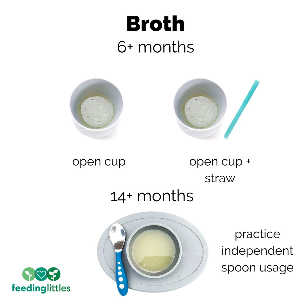- Many people like to serve soup or broth when babies 6+ months are sick. Remember – babies still need breast milk or formula as their main nutrition source, so keep broth or liquids other than baby’s milk to no more than 1-2 ounces a day around 6 months and 3-4 oz a day around 9 months. Once baby is about a year you can liberalize their soup/broth intake.