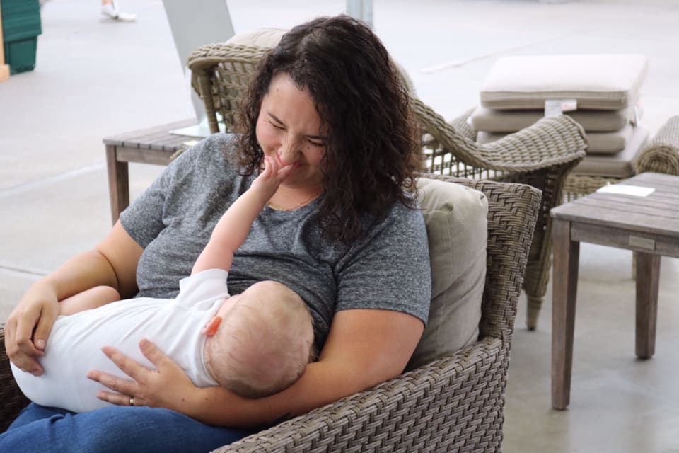 It’s still important for breastfed babies to bring their hands to midline while feeding. Below are some techniques we use with my breastfeeding clients to help promote hands to midline: