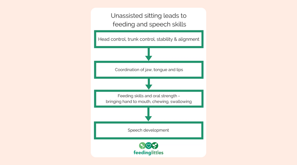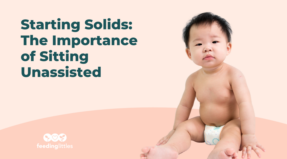 Why is sitting unassisted so important? First and foremost, we want your baby to be safe, and if they’re slouching or leaning while eating it can be more difficult for them to safely swallow food.